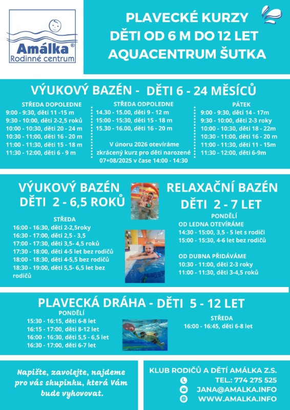 - Plavání kojenců, batolat a dětí s doprovodem rodičů , Šutka Praha 8
